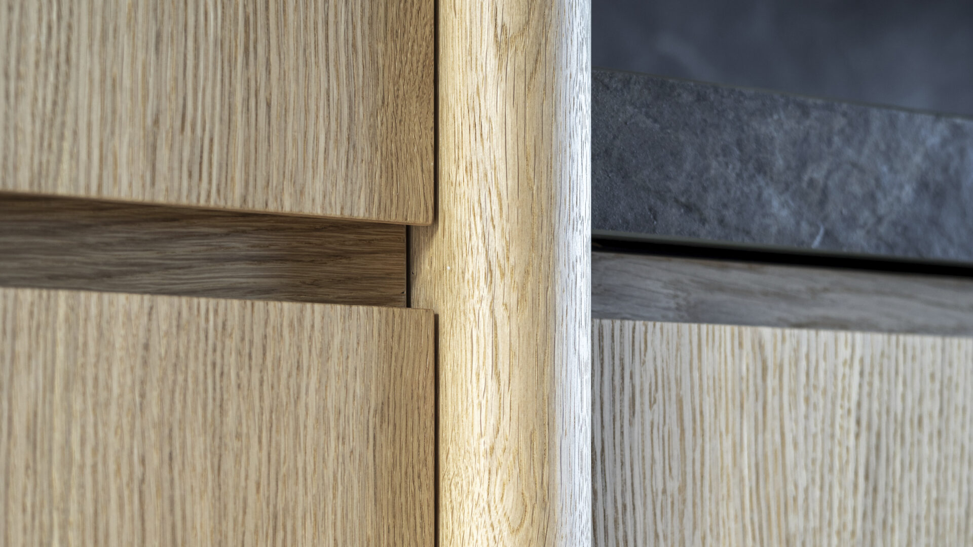 Mit fachlicher Hingabe realisierten wir die exklusiven Innenausbauarbeiten in Eiche furniert sowie Eiche in Altholz.